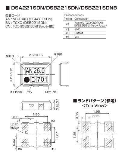 KDS晶振,1XXA26000MBA壓控溫補晶振,DSA221SDN進口晶振,2520尺寸VCTCXO晶振,支持廣泛的運行溫度范圍-40+105℃范圍內運行,支持低電壓,低相位噪音,單體結構,無需防濕包裝管理 Moisture Sensitivity Level : LEVEL1(IPC/JEDEC J-STD-033),依據AEC-Q100,被廣泛應用于車載通訊系統,衛星廣播領域.小型SMD接縫密封時鐘晶體振蕩器的單位,對于WLAN,藍牙,數碼相機,DSL和其他IT產品的晶振應用,三態功能,符合RoHS/無鉛.