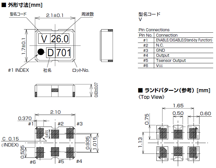 | 溫度特性 | ±15×10−6 max./ −30℃+85℃ |