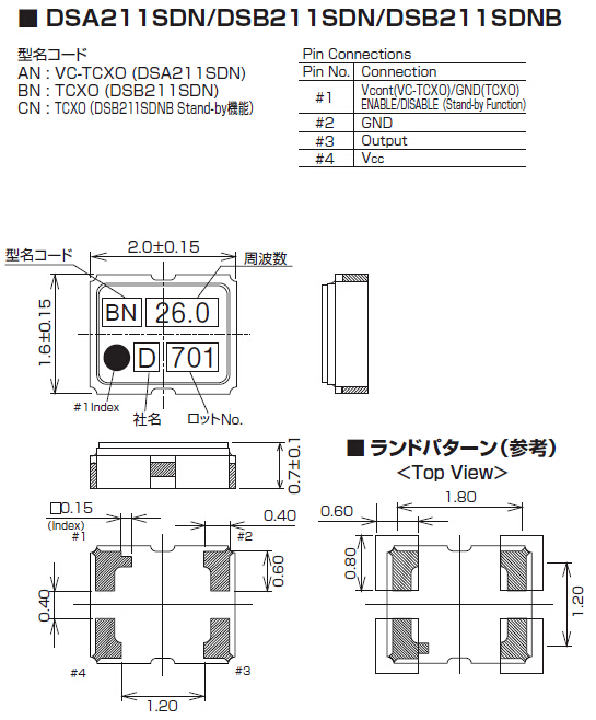 | KDS | 1XXA20000CAA | DSA221SDN | 2520 | 20.000M | 3.3V | 1.5ppm | 4腳 | |