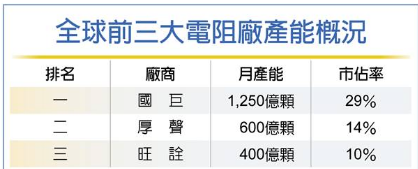 此次即將調漲的國巨是繼旺詮在1月宣布漲價后,2021年第二家針對代理商調漲的電阻廠商.資料顯示,旺詮為全球第三大芯片電阻廠,為奇力新下屬公司.旺詮產能分布在東莞及馬來西亞,目前月產能約360億顆.此前,旺詮科技在給客戶的通知函中表示,由于各項原材料價格上漲,訂單出貨比將近4倍之下,針對大中華區代理商調漲厚膜電阻價格15%,新價格于2月17日生效. 中時電子報稱,此次國巨漲價,除了原材料如陶瓷基板、油墨、包材價格全面起漲之外,還受到另一家中國臺灣的電阻大廠產量銳減的情況持續惡化影響.該廠芯片電阻月產高達600億顆,產能排名高居全球第二,且近年擴了不少小尺寸電阻產能.而2020年末,該廠發生"家變",產量銳減50%.