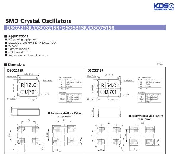 1XSE016000ARU有源晶振,DSO321SR晶振,KDS石英振蕩器聲表面諧振器