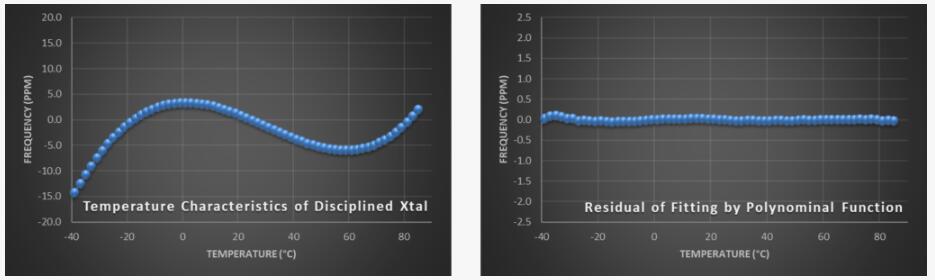 普通石英坯料可能存在輕微的缺陷或雜質,例如石英表面的拋光區域不足或晶坯中的晶格無序.這些微小的不規則性可能會導致特定溫度范圍內的快速頻率跳躍,這不能用有限次多項式方程來描述.因此,TCXO