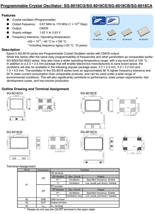 隨著快速發展的互聯網,愛普生公司快速推出了SG-8018CG晶振,編碼X1G005601049500,1.62-3.63 V有源晶振,愛普生的SG-8018系列是可編程晶體振蕩器系列CMOS輸出。這個系列提供了頻率和其他參數的可編程性,SG-8002/SG-8003系列,它們也具有更廣泛的工作溫度范圍,最高極限為105°C。除了2.5 × 2.0 mm的封裝,將使電子制造商節省板空間,該振蕩器也將在以下流行的封裝尺寸:3.2 × 2.5 mm, 5.0 × 3.2 mm和7.0 × 5.0 mm。SG-8018系列振蕩器的頻率容忍度約為66%比同類產品低50%的電流消耗,適用范圍廣環境條件。這也將大大有助于性能,更低的功率要求,快速開發周期和低量生產。