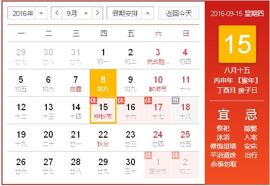 大家好!中秋佳節(jié)來(lái)臨之際,我司根據(jù)國(guó)務(wù)院辦公廳公布的《2016年節(jié)假日安排的通知》的有關(guān)規(guī)定,結(jié)合我司實(shí)際狀況,經(jīng)研究決定放假三天:9月15~17號(hào).于18日(星期天)正常上班.放假期間我司暫停發(fā)貨,給您帶來(lái)不便,敬請(qǐng)諒解.請(qǐng)市場(chǎng)部各位同仁,放假之前做好客戶的備貨以及發(fā)貨等相關(guān)工作.